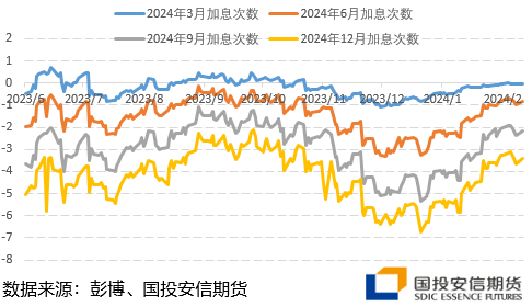 2023年四季度,随着美联储利率会议对利率见顶的定调,市场对于美联储降息预期持续升温,一度定价2024年3月首次降息且年内降息6次以上,与美联储观点背道而驰,这成为年初以来金价最大的潜在利空。