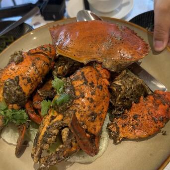 来珍宝海鲜主要吃各种口味的青蟹,螃蟹嘛我的最爱之一,不过这种蟹是斯里兰卡青蟹,属于土腥味比较重的一种,我以前就吃过几次,需要找专门的网店去订货。清蒸没法吃,只能用重口味的调料去压制。优点就是个头大,看着唬人。