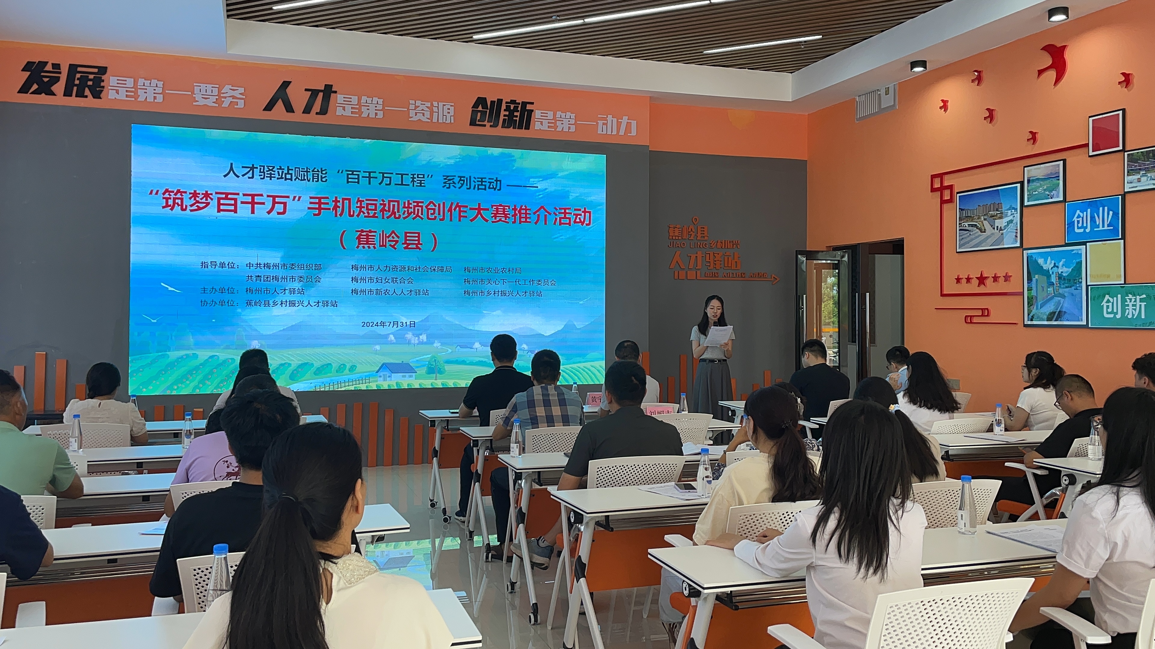 为进一步推动2024年人才驿站赋能“百千万工程”系列活动“筑梦百千万”手机短视频创作大赛开展,加强参赛者短视频创作技能,鼓励更多“百千万工程”参与者报名参加比赛,7月19日至31日,我市各县(市、区)陆续举办了梅州市“筑梦百千万”手机短视频创作大赛推介活动。活动由市人才驿站、市新农人人才驿站、市乡村振兴人才驿站主办,市巾帼双新双创服务中心、各县(市、区)乡村振兴人才驿站协办。市人才驿站、市新农人人才驿站、各县(市、区)人社局相关负责同志以及县、镇乡村振兴人才驿站代表,返乡入乡青年代表、企业代表等300多人参加活动。